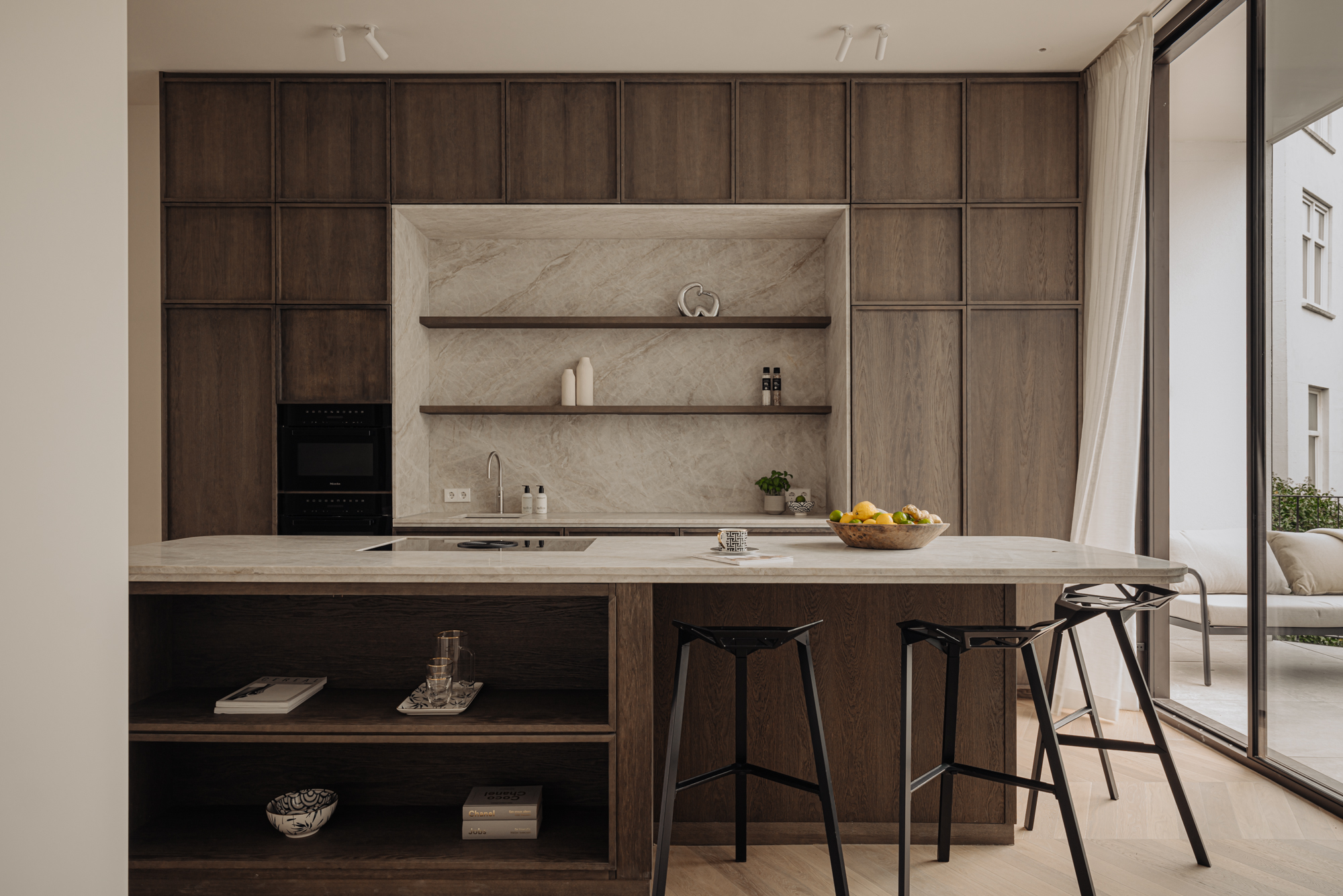 The interiors at Willemsparkweg were crafted by interior designer Merrith van den Bosch, who drew inspiration from the home's original architectural details. The design merges classic charm with clean modern lines, featuring elegant curves, natural textures, and a soft color palette.